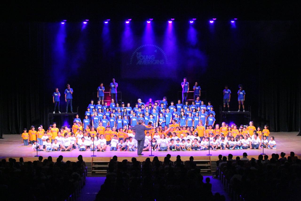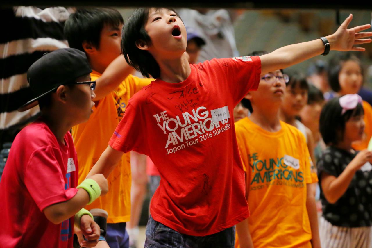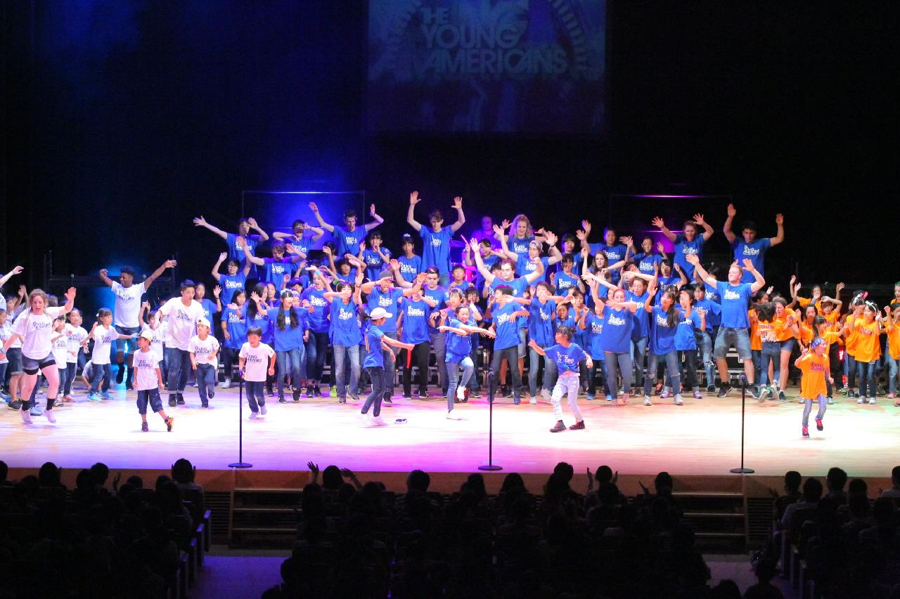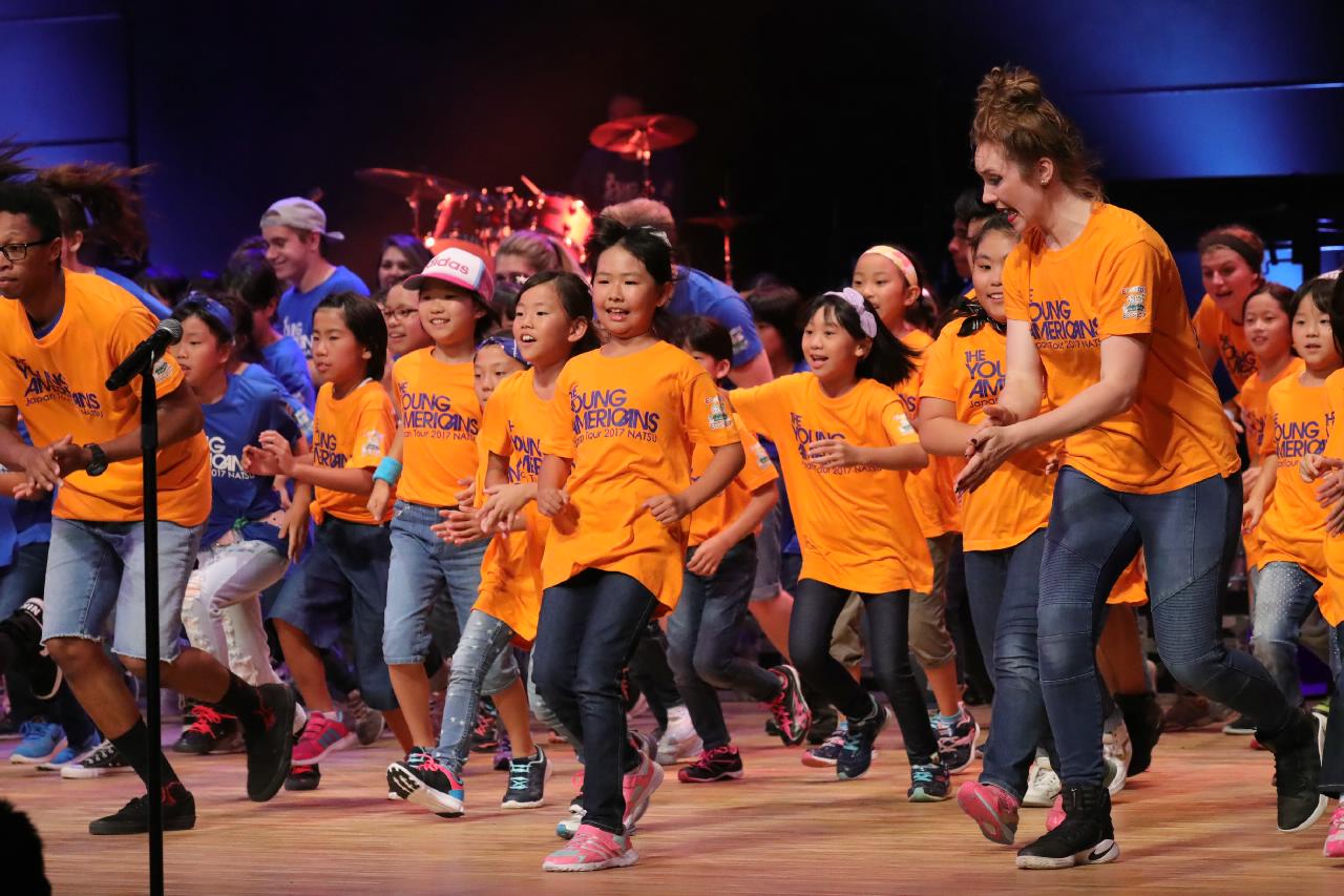 ヤングアメリカンズによるデモンストレーション。ワークショップ、歌・ダンス・コーラスの練習など