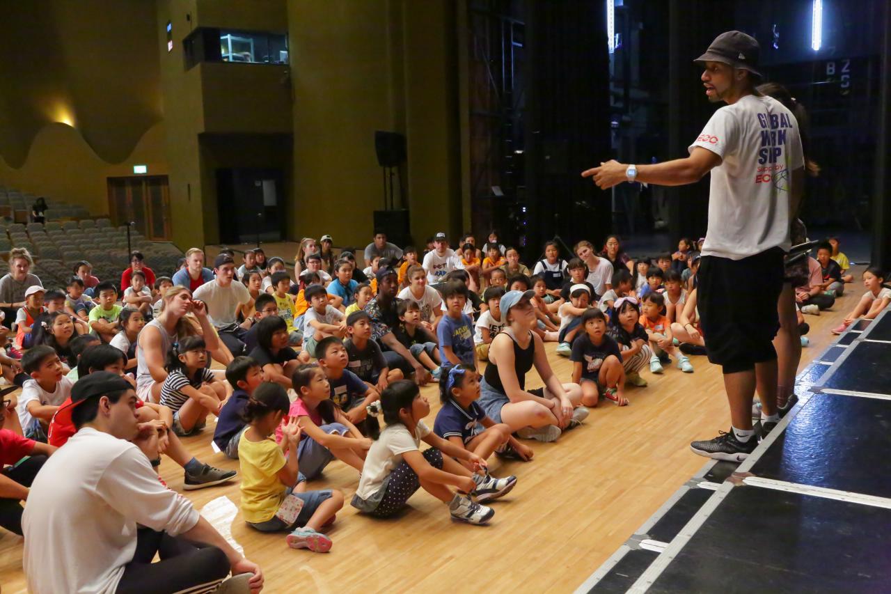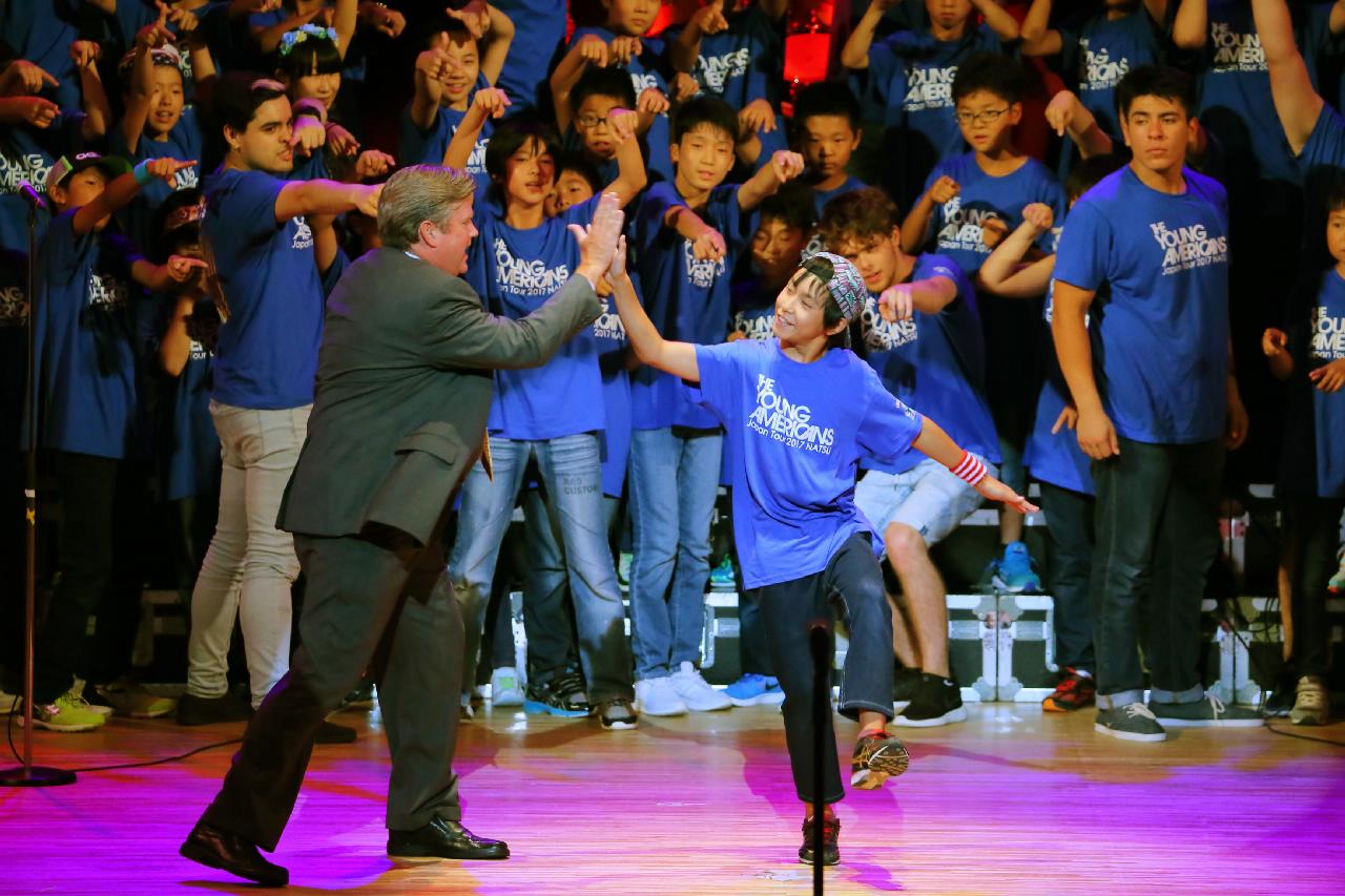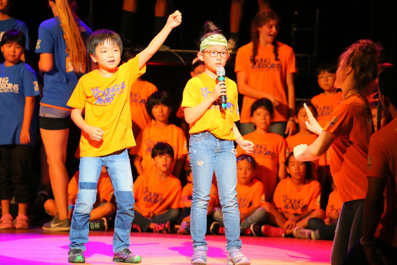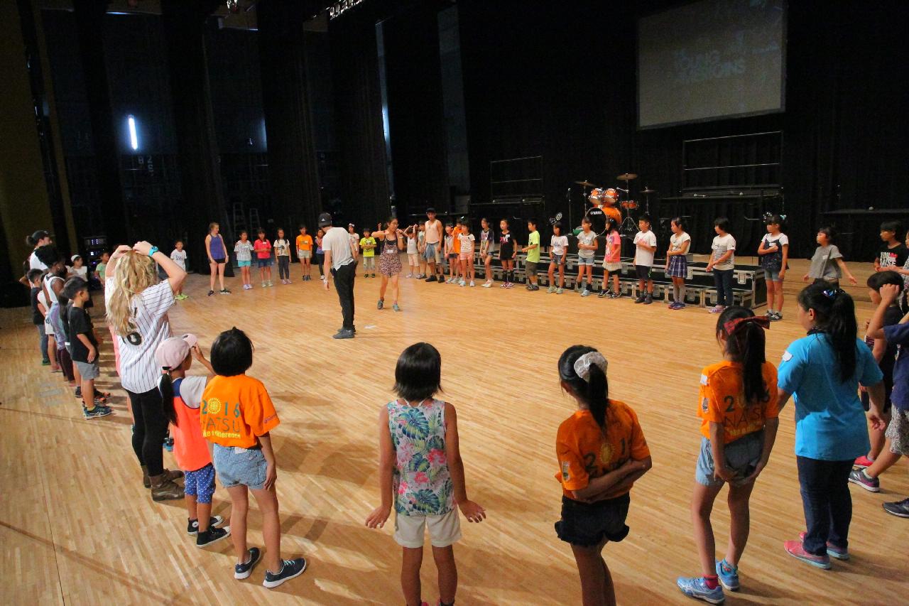 ヤングアメリカンズによるデモンストレーション。ワークショップ、歌・ダンス・コーラスの練習など