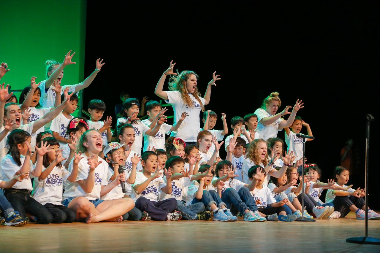 ヤングアメリカンズによるデモンストレーション。ワークショップ、歌・ダンス・コーラスの練習など